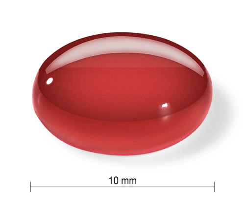 Ďalej obsahuje: Sójový olej (nosič); hovädzia želatína, glycerol (povlaková látka); glycerylpalmitostearát (zvlhčovadlo); polyglycerolové estery mastných kyselín (emulgátor); žltý oxid železitý, karmín (prírodné farbivá). Obsahuje sóju.