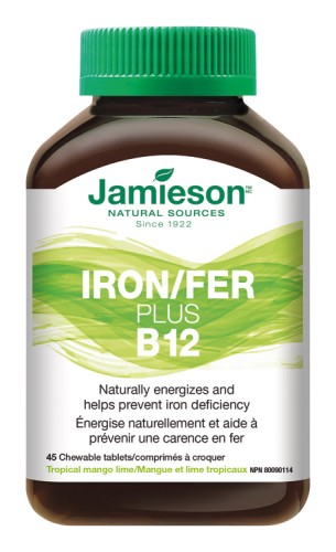 Jamieson Železo plus B12 cmúľacie tablety 45tbl.
